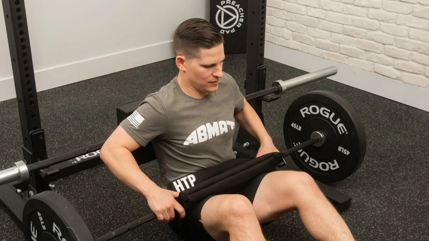 Co-developed by Dr. Kelly Starrett, Kyle Divine, and the team at AbMat, the Pivot Pad effectively turns any squat rack into a variable-height hip thrust machine. A patent-pending keyhole design enables the Pivot Pad to snap directly onto a standard, racked Olympic barbell. Once attached, the pad then rotates with the user, creating an immersive experience – almost as if the pad isn’t there.