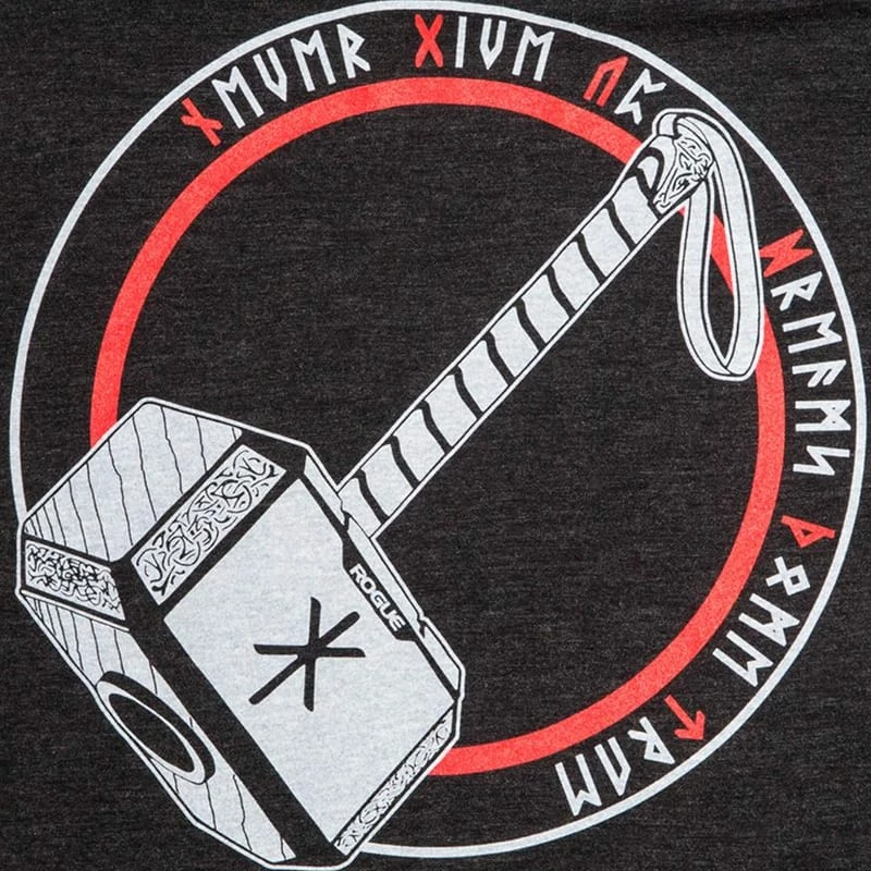 This racerback tank is another exclusive design inspired by Rogue athlete and 2-time “Fittest Woman on Earth,” Annie Thorisdottir. Along with the Rogue logo across the chest, the back features an original graphic with Thor’s mythical hammer and an inspirational message from Annie written in old Norse lettering. Translation: “Never Give Up, Dreams Come True– Thorisdottir.”