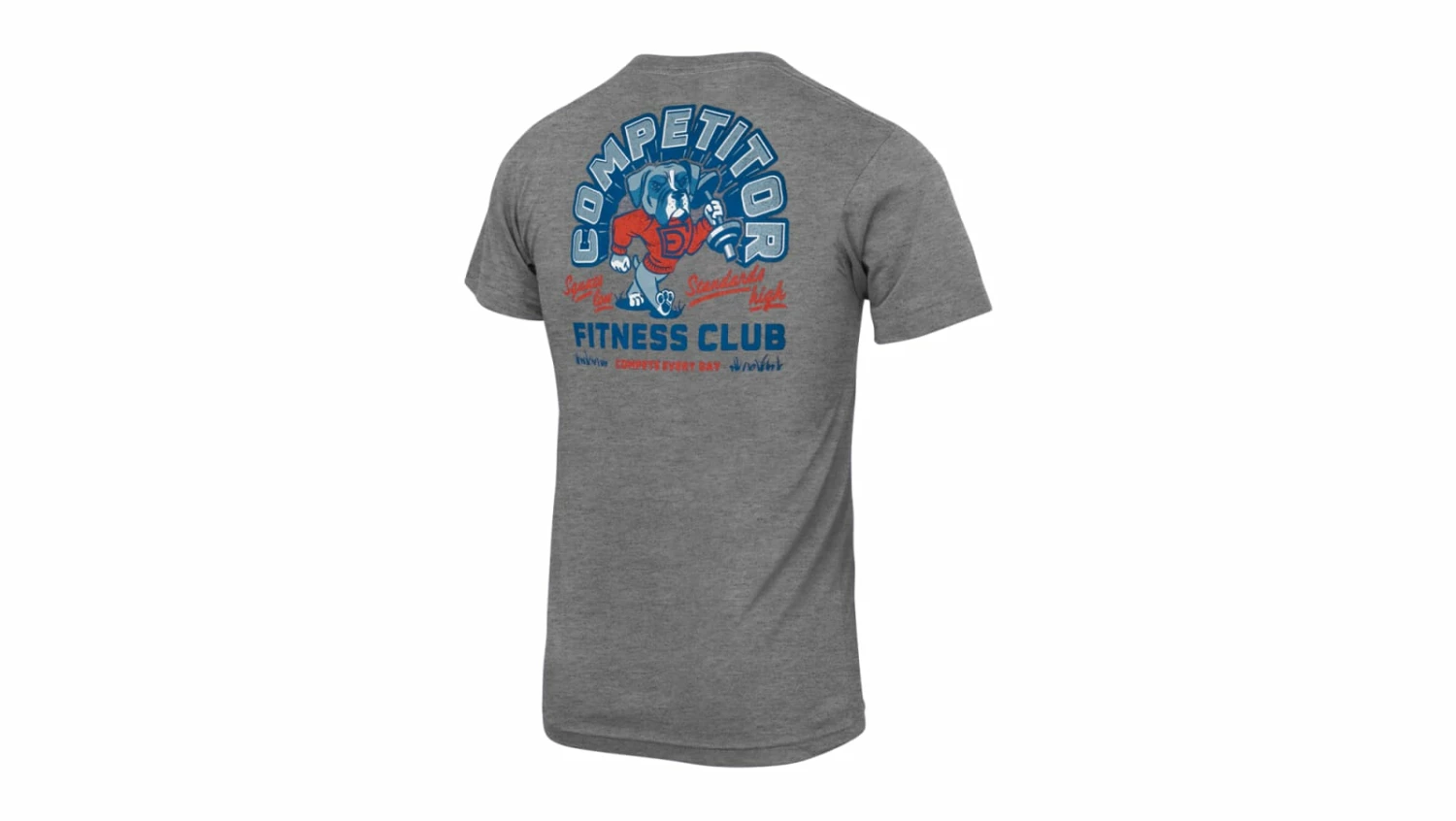 “Squats Low, Standards High!” This men’s crewneck tee from Compete Every Day features an original “Competitor Fitness Club” retro-style design on a comfortable tri-blend gray material. Soft and flexible, it’s a shirt equally suited for a workout or an off-day.