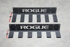 Rogue’s wall-mounted Multi-Use Hangers are reliable catch-all storage options for just about any lightweight gym accessory, from belts and chains to jump ropes, bands, etc. Not only do these simple units help clean up a training space, they also make it more efficient—as athletes can quickly and easily find what they need.
