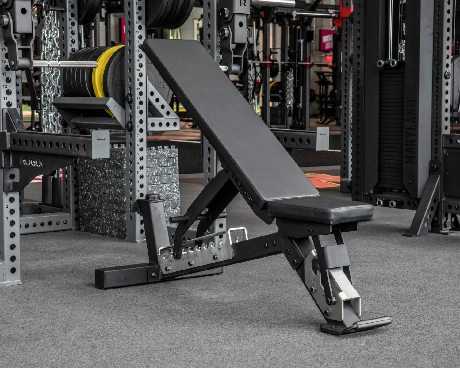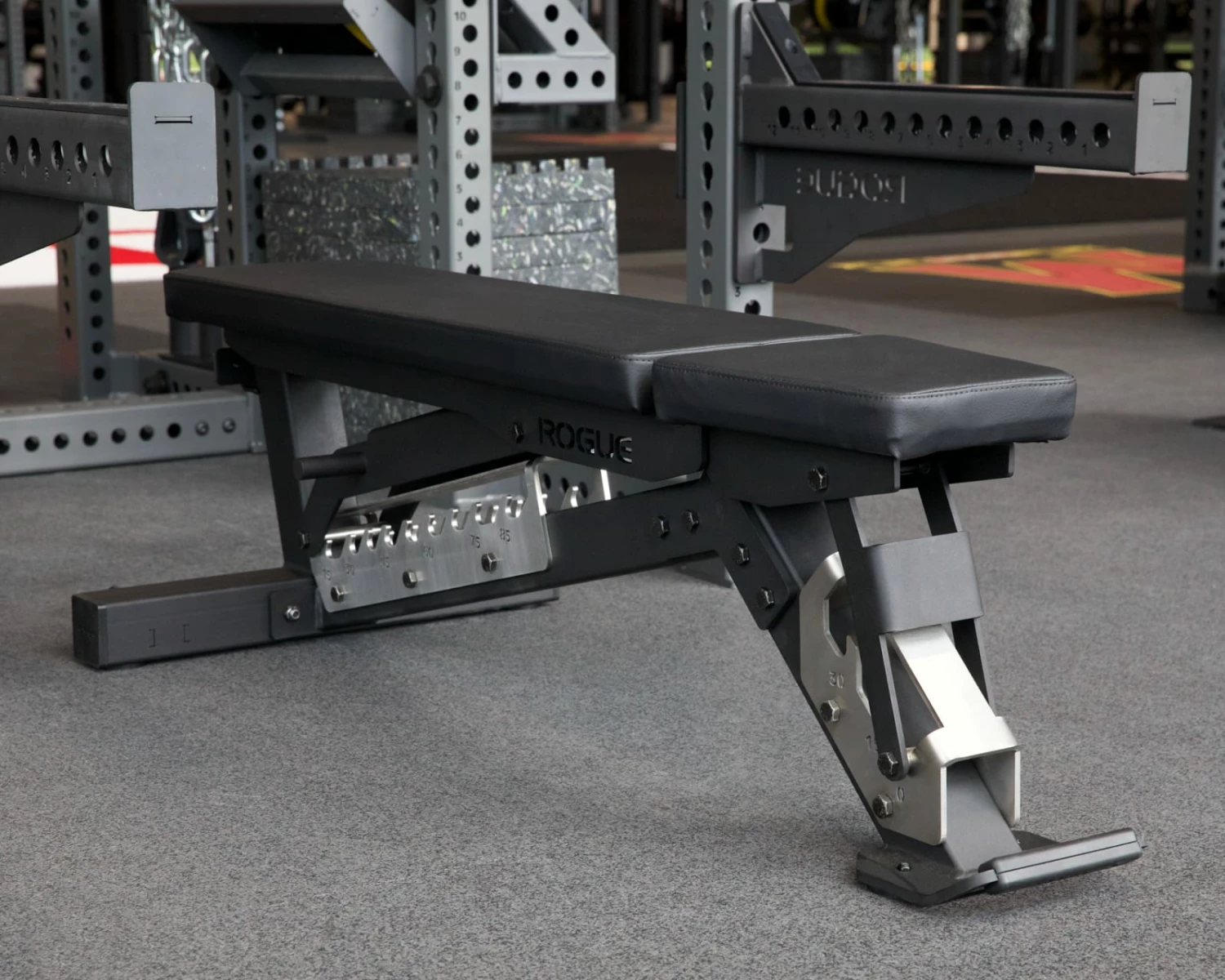Version 3.0 of the Rogue Adjustable Bench features an upgraded 3×3” 11-gauge steel frame, an expanded range of incline and seat positions, and an efficient bolt-together design*that enables a flat shipping cost—far less than past models. This uniquely robust, retractable unit also now includes a built-in upright storage stand, with rubber padding at the base to protect your flooring and ensure stability.