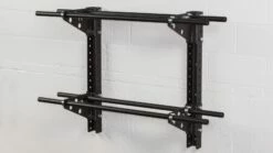 For any gym with more than a few medicine balls and less than enough storage space, Rogue Swiss Brackets are the zero footprint solution. Sold in pairs, these 0.1857″ thick laser cut steel brackets (packaged with a set of four shaft collars) allow gym owners to install a customized, wall-mounted medball storage rack in virtually any size training space.