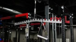 It looks like a medieval torture device, but the Lat Saw attachment from Spud Inc. is actually a precision, micro-adjustable new tool for working the lat muscles. The solid metal construction of the main unit includes incremental 1” rungs for attaching either a set of Cable Handles or Spud Inc. Dynamite Sticks. This allows athletes to quickly and easily switch between wide and narrow grips without having to replace any equipment. Different hand angles also enable more options for easing or increasing focus on the grip, forearms, biceps, etc.