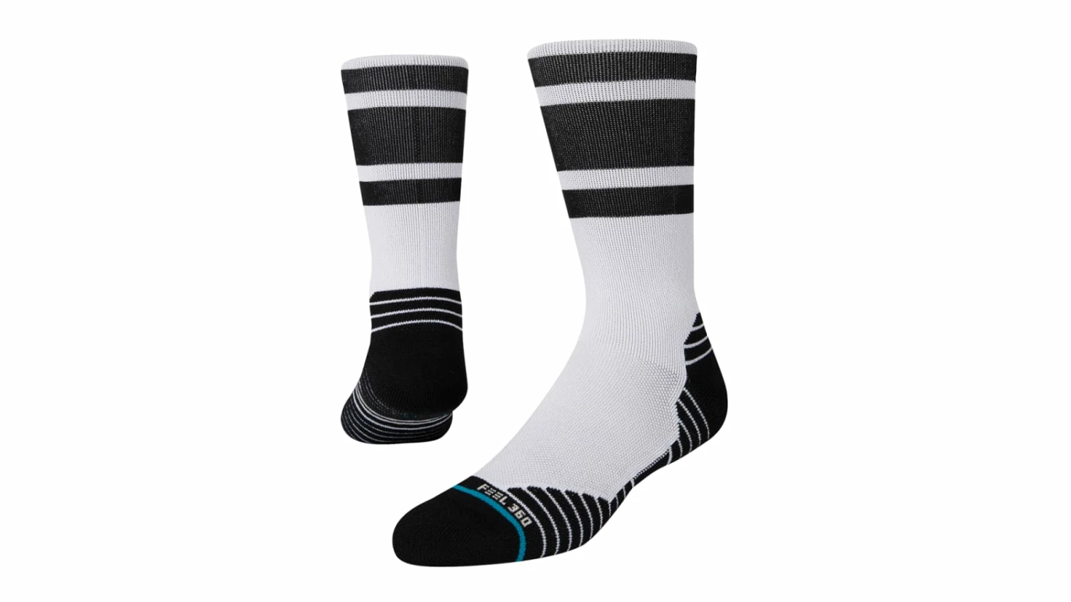 Available here in a classic athletic style with alternating stripes, Stance’s Boyd Mid Crew Socks are durable enough for a high-intensity workout and comfortable enough for a day on the couch. Equipped with a reinforced heel and toe, special anatomical cushioning, and mesh airflow panels to keep your feet cool and comfortable, this nylon blend design also features Stance’s advanced FEEL360 and InfiKnit technology, which help prevent tears and eliminate odor and moisture as you train.