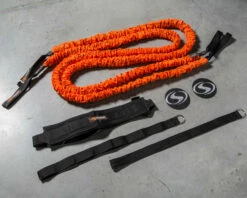 The Son of the Beast Battle Rope set is the second generation of elastic, multi-purpose battle ropes from Stroops. The PRO Kit edition, available here, includes (2) 10-ft. Slastix Battle Ropes, (1) Power Pull Belt, (2) Carabiners, (2) Cloth Anchors, and (2) Agility Dots.