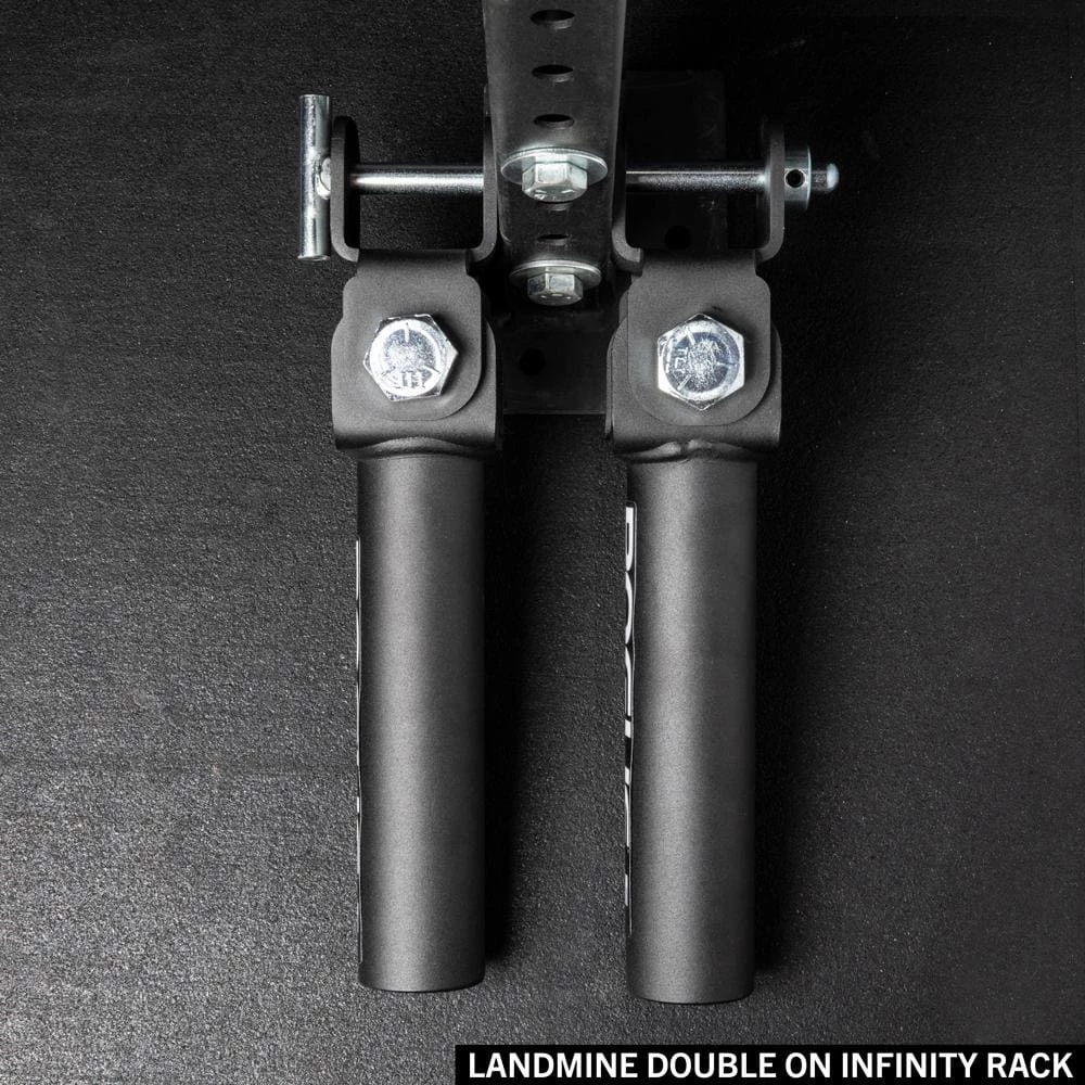Combined easily with any existing barbell and stable Infinity or Monster Lite upright, the Rogue Landmine can become one of the most dynamic tools in your arsenal—helping build core rotational stability and peak power through a greater range of motion. The key is a smooth-pivoting, 7-Gauge Steel Sleeve, which is compatible with most standard Olympic barbells and ideally suited for rotational training exercises.
