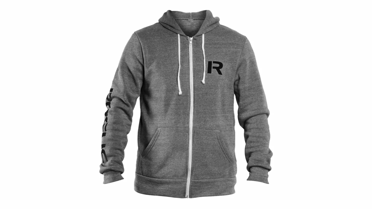 The eco-fleece Rogue Stencil Hoodie, available here in Gray, is made from a soft and streamlined cotton-poly-rayon blend with a ribbed hem-band and sleeve cuffs. It features the Rogue “R” on the chest and the full ROGUE logo down the length of the right sleeve.