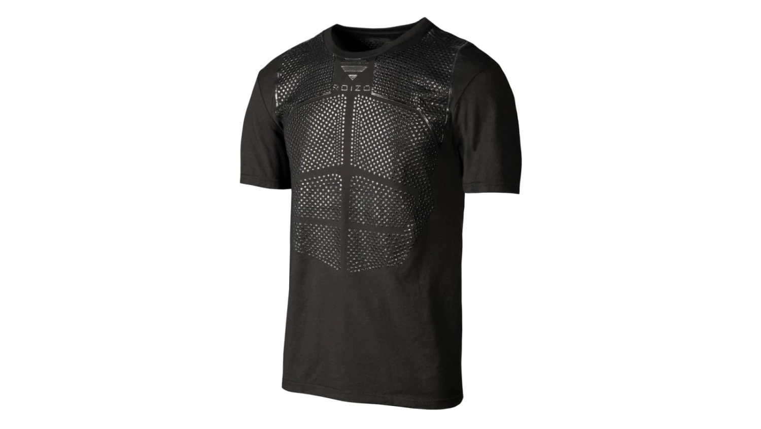 The Original Strongman Grip Shirt, made from a flexible cotton-poly blend fabric, features four different grip impressions built into both the inside and outside of the shirt; front and back.